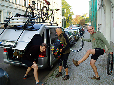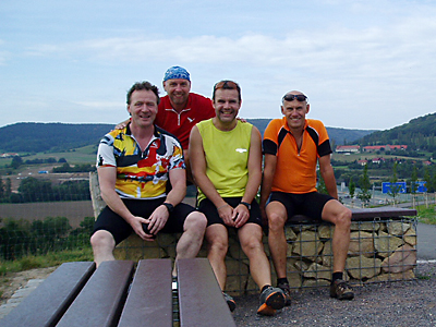 Nach zwei Jahren Reden und einer intensiven zweistündigen Vorbereitung der Etappenplanung (1. Tag-65 km, 2. Tag-85 km, 3. Tag-70 km), mit Ab- und Ankunftspunkten machten wir uns dann endlich am 02.09.2011 mit dem Bus von meinem Bruder, mit welchen Sandra dann wieder nach Hause gefahren ist, auf den Weg nach Rudolphstein um mit dem Rad in den nächsten Tagen bergab in Richtung Heimat, bis Naumburg, zu radeln. Immerhin bestand unsere Truppe zu 50% aus Vereinsmitgliedern, die ich hier nicht im Einzelnen aufzählen möchte – naja doch – Jörg Laue und ich. Also waren wir zu viert- Steffen und Norbert waren noch mit von der Partie.