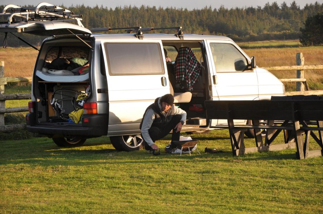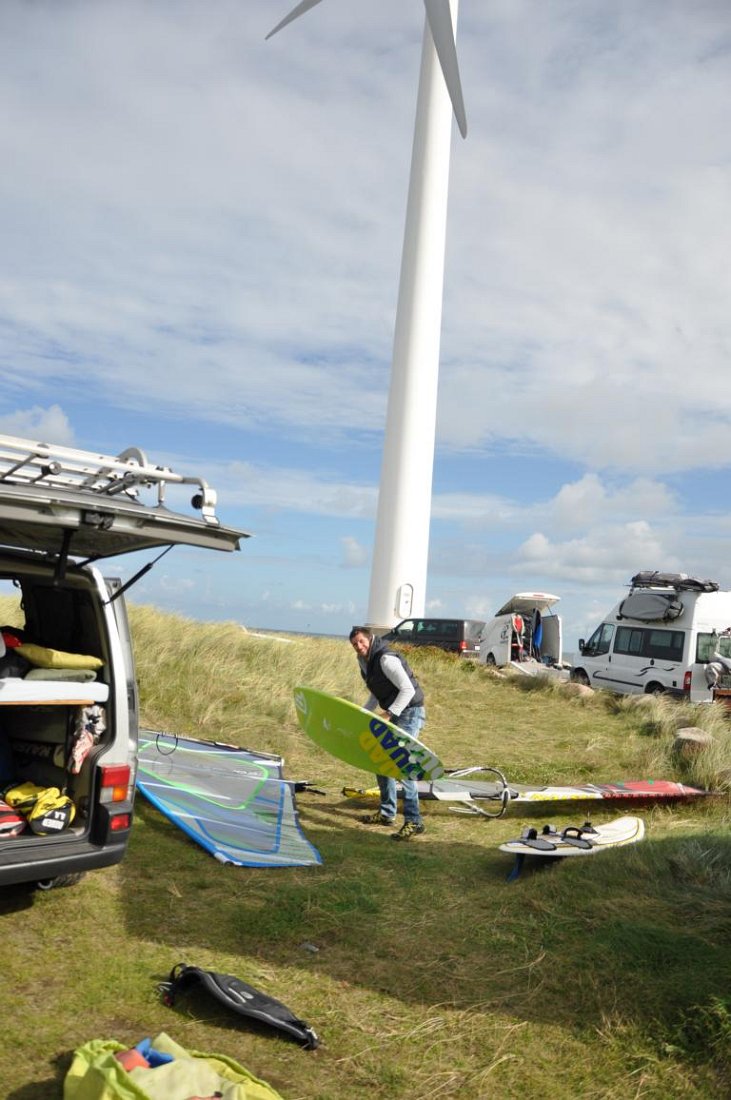 Auch dieses Jahr hat der September uns nicht im Stich gelassen. Bereits montags, im Festzelt zur Wiese, verabredeten Thomas und ich am kommenden Mittwochabend nach Dänemark aufzubrechen. Die Forecast war ganz ok, sollte aber zunehmend besser werden. Zunächst lief alles nach Plan, bis mein gut beladener Bus nicht weiter wollte. Zum Glück war Thomas sein Bus einsatzbereit. Meine Karre zur Werkstatt gebracht, dort schnell umgeladen und mit einer Stunde Verspätung die 800 Km in Angriff genommen. Danach lief alles wie gewohnt. Eingecheckt im Campingplatz und ab nach Hanstholm, drei Stunden am Windrad warmfahren mit den 5er Segeln, abends Campingplatz und Grillen!