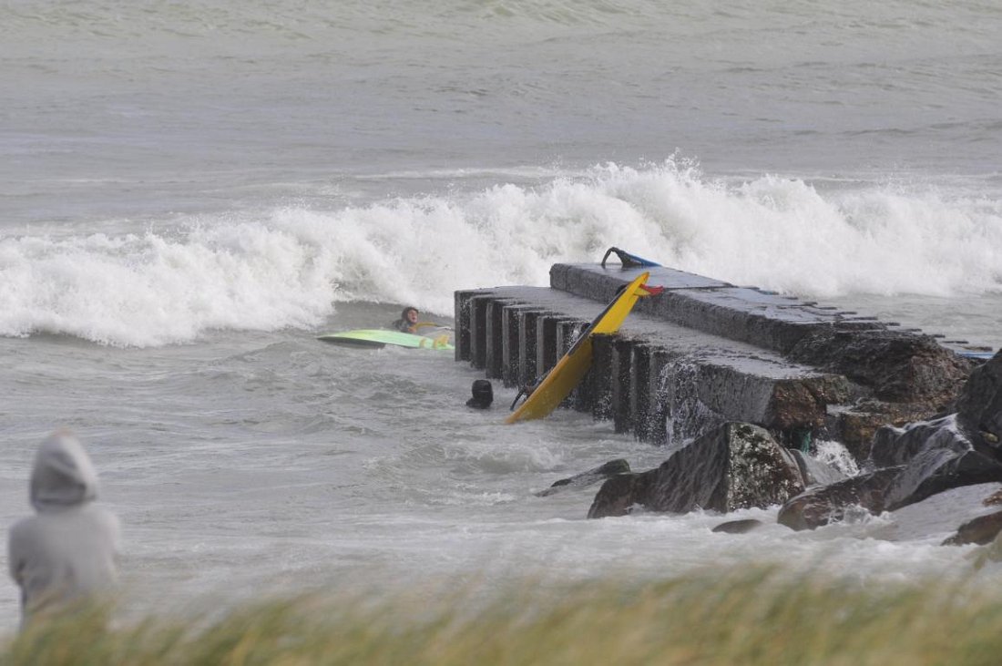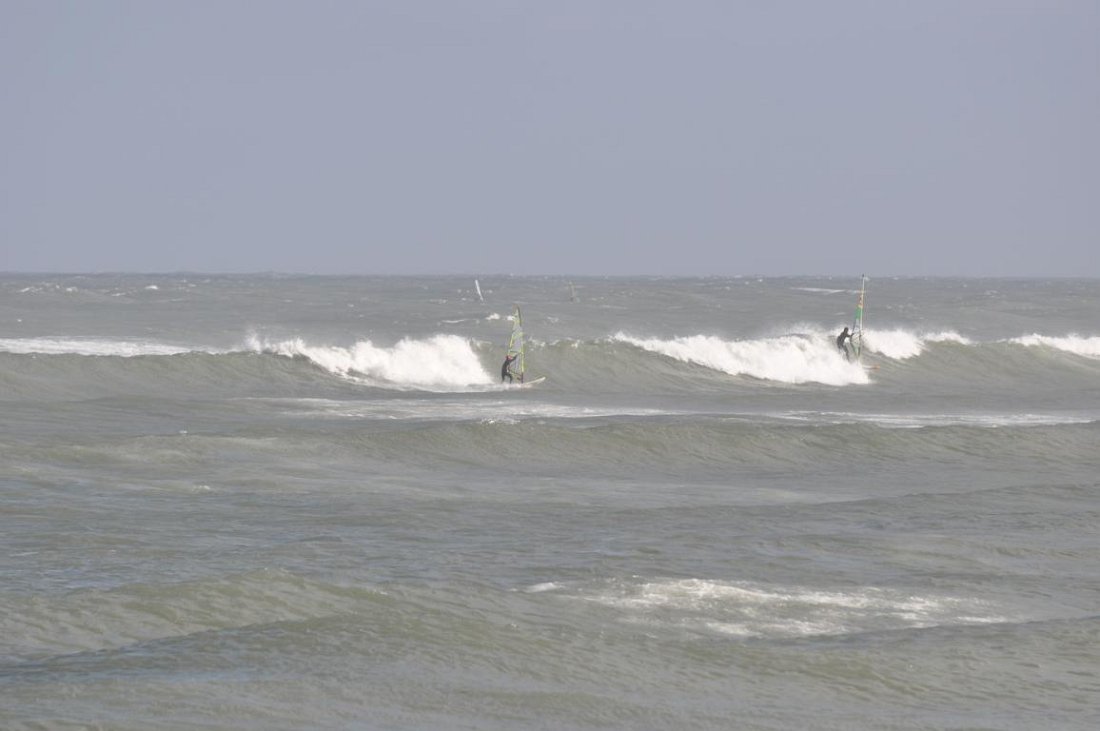 Samstag war der Höhepunkt, denn hoch hatten sich die Wellen aufgebaut. Da der Wind nachlassen und der Hauptspot in Hanstholm wegen Schießübungen gesperrt werden sollte, waren wir recht zeitig unterwegs, dafür aber zur rechten Zeit am Windrad. Schon vor dem Frühstück gab‘s die erste Session bei 3m Welle mit dem 4,5er. Ein perfekter Morgen und um 9:00 Uhr endlich einen Kaffee. Danke Thomas! Der Wind wurde zwar etwas schwächer die Wellen liefen jedoch den ganzen Tag, so dass wir wieder erst abends das Zeug einpackten, um zu grillen!